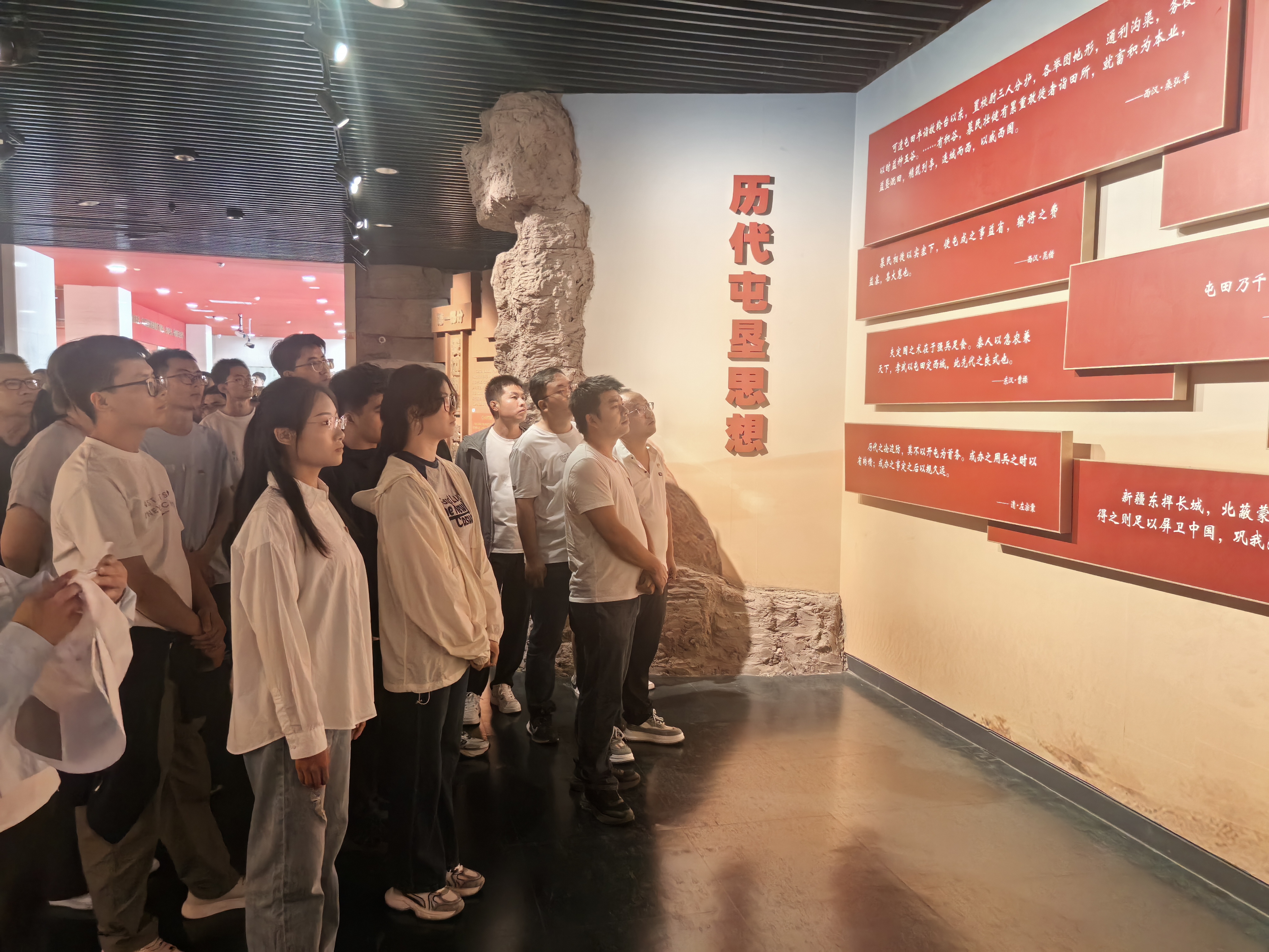 在講解員的引導(dǎo)下,大家依次參觀“屯墾戍邊、繼往開來”等主題展廳,通過泛黃的軍墾日記、銹跡斑斑的坎土曼、簡陋的地窩子復(fù)原場景等珍貴文物,系統(tǒng)學(xué)習(xí)新疆生產(chǎn)建設(shè)兵團(tuán)從無到有、由弱到強(qiáng)的奮斗歷程。講解員以“八千湘女上天山”“王震將軍率部開墾石河子”等鮮活故事,深刻闡釋了“熱愛祖國、無私奉獻(xiàn)、艱苦創(chuàng)業(yè)、開拓進(jìn)取”的兵團(tuán)精神與延安精神的內(nèi)在契合。黨員們認(rèn)真聆聽,不時(shí)駐足凝視,在軍墾先輩的奮斗故事中汲取攻堅(jiān)克難的精神力量。
