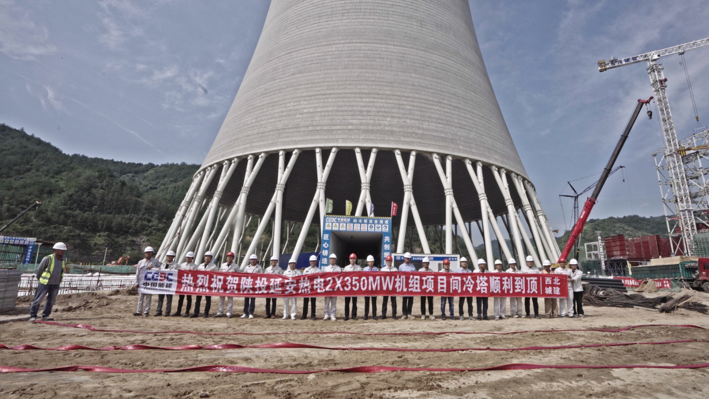 7月31日,延安熱電二期項(xiàng)目2×350MW機(jī)組迎來(lái)重要里程碑——總高183米的間冷塔隨著最后一罐混凝土澆筑完成,提前35天成功封頂。這一關(guān)鍵節(jié)點(diǎn)的圓滿完成,為后續(xù)機(jī)組順利投產(chǎn)奠定了堅(jiān)實(shí)基礎(chǔ)。